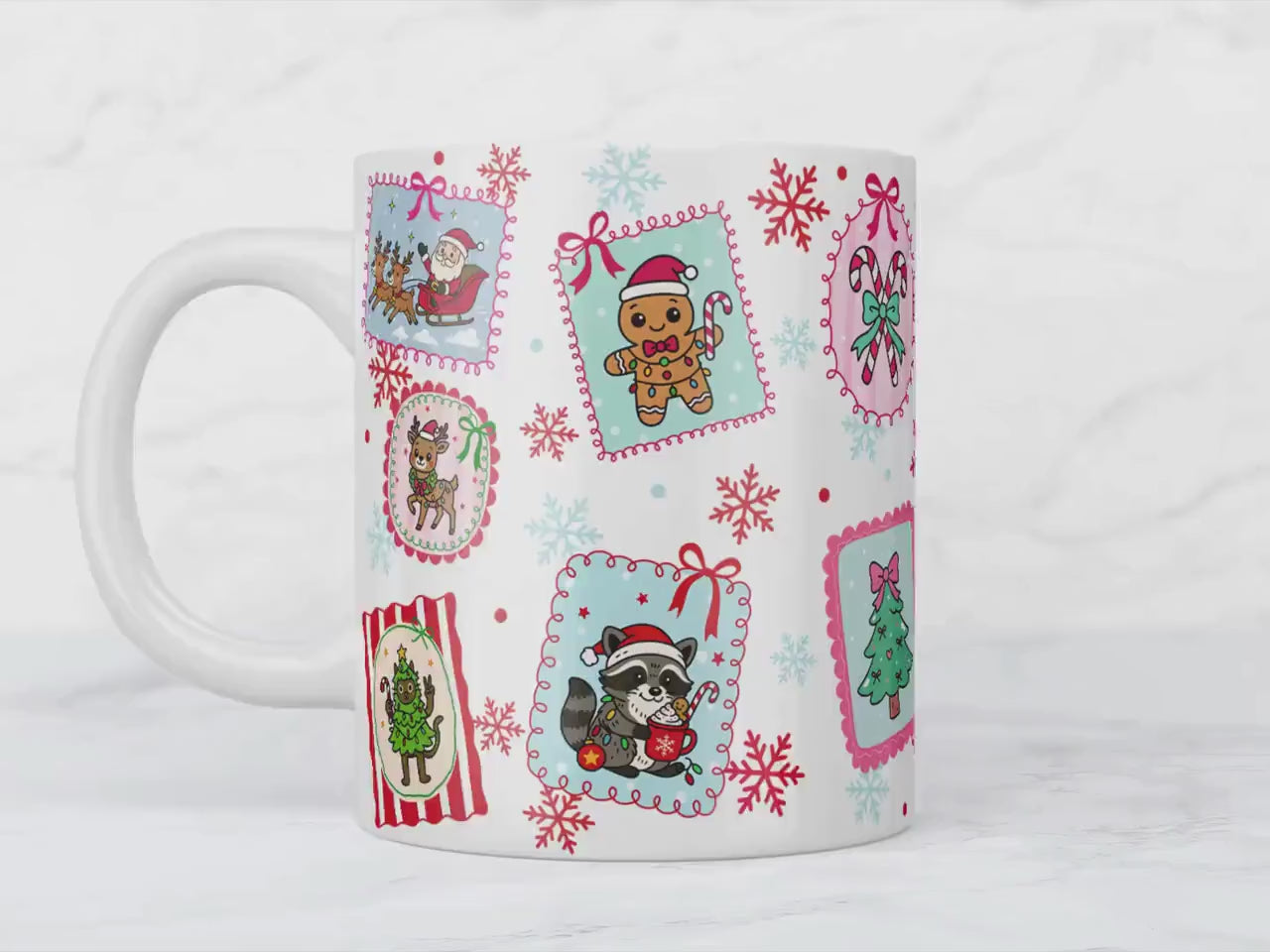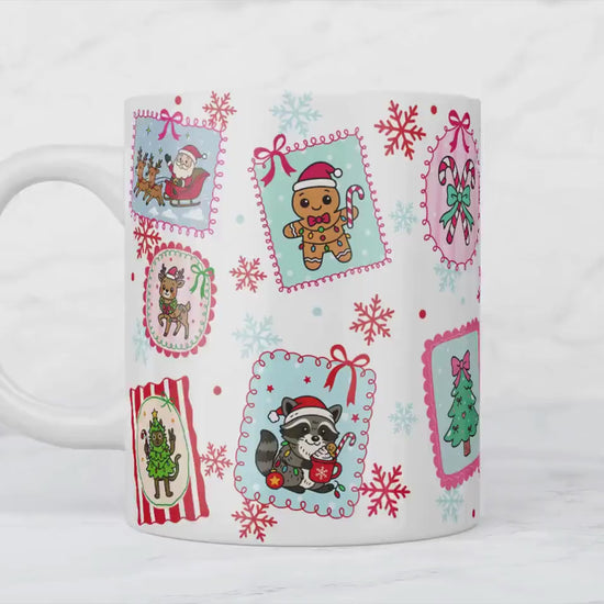 This Christmas Stamps Mug isn't just a vessel for your drinks; it's a celebration of the season. Its festive design makes it an excellent gift for friends, family, or even yourself. Whether you're enjoying a quiet moment by the fireplace or hosting a holiday gathering, this mug is sure to add warmth and joy to your festive festivities.